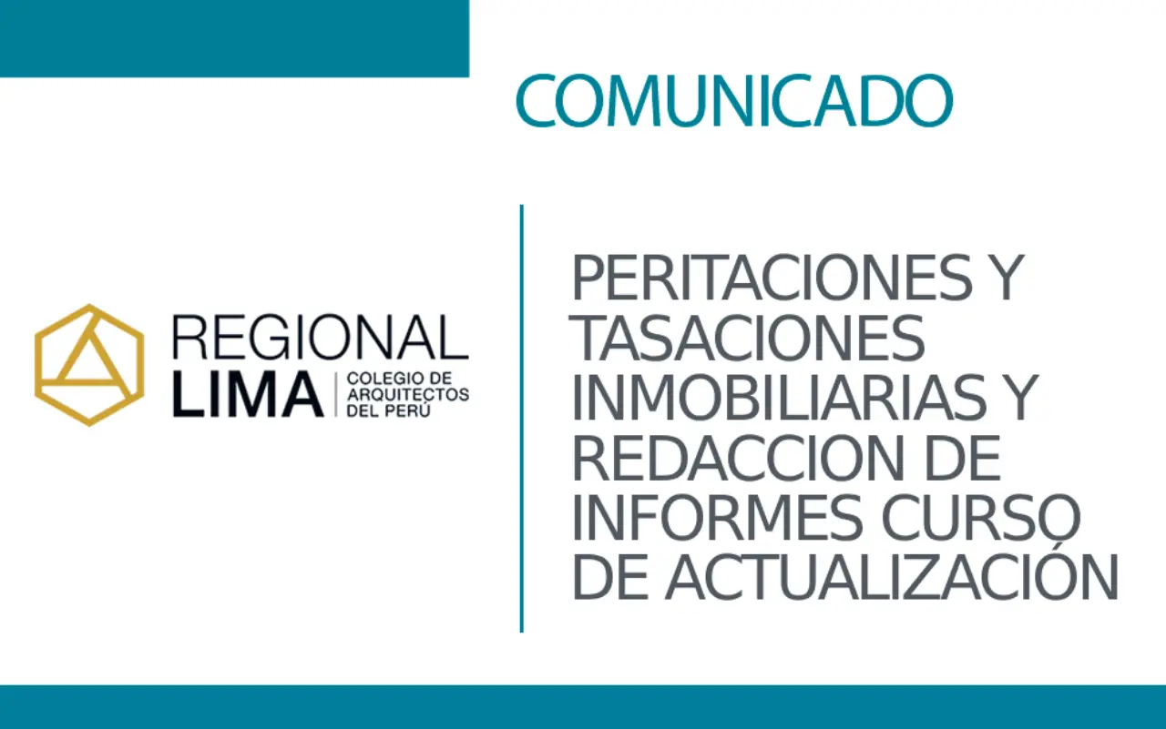 📢 Participa del Curso Taller: PERITACIONES Y TASACIONES INMOBILIARIAS Y REDACCION DE INFORMES CURSO DE ACTUALIZACIÓN | NotiCAPLima 029 – 2026
