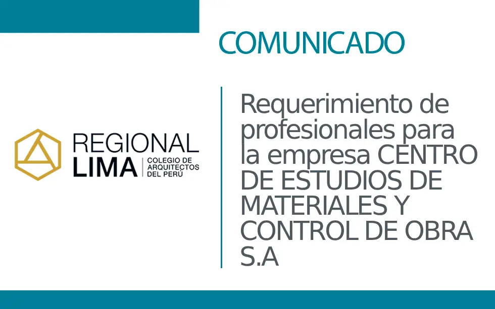 Buzón Laboral📭: Requerimiento de profesionales para la empresa CENTRO DE ESTUDIOS DE MATERIALES Y CONTROL DE OBRA S.A | NotiCAPLima 091 – 2025