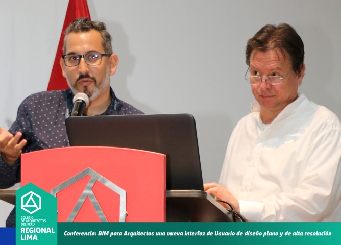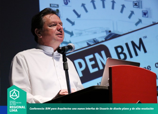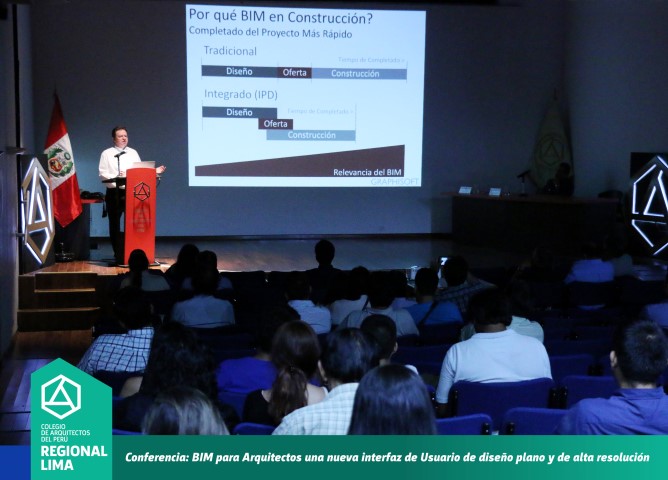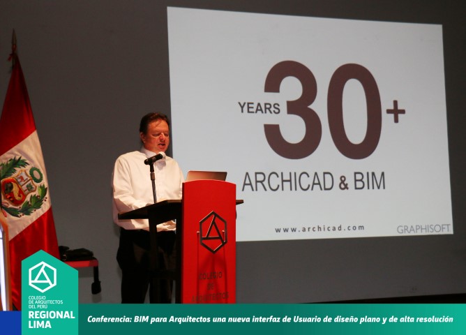 El Colegio de Arquitectos del Perú – Regional Lima realizó la conferencia BIM para Arquitectos, una nueva interfaz de usuario de diseño plano y de alta resolución, la cual contó con la exposición internacional del arquitecto MiklosSzovenyi Lux de Hungría, Jefe de Relaciones Estratégicas de Graphisoft y del arquitecto Daniel Basurto, expositor nacional miembro del American InstituteArchitects.