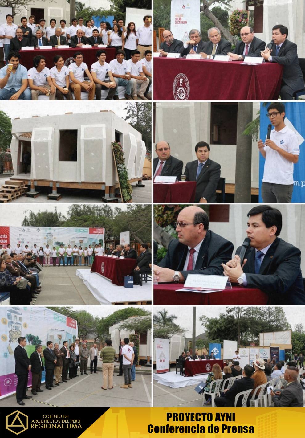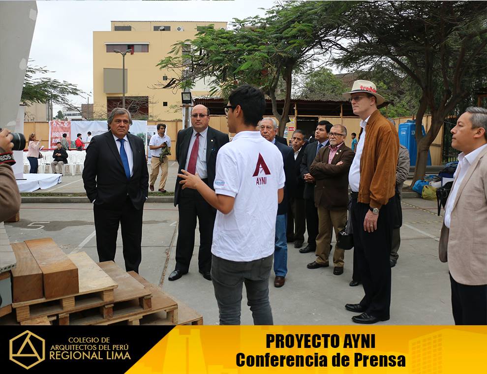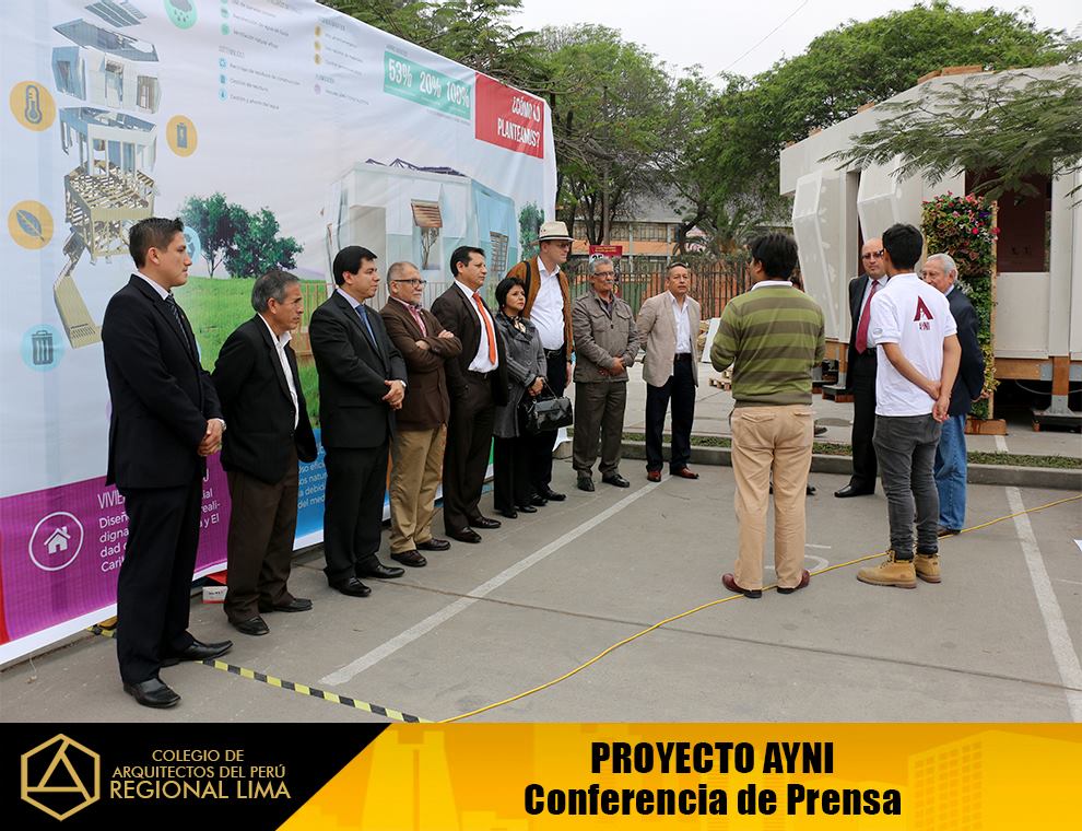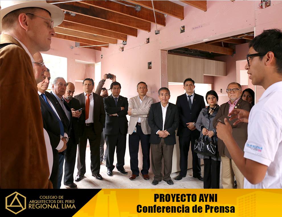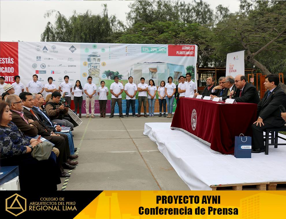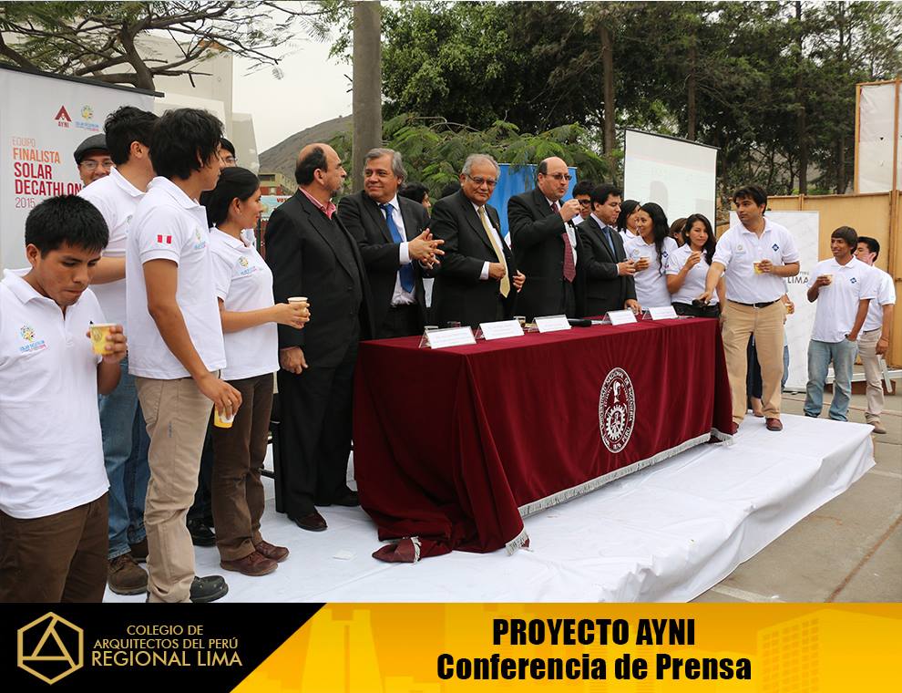 El CAP – Regional Lima, estuvo presente en este evento, por motivo de la culminación de la construcción del prototipo de la “Casa AYNI”, el cual posteriormente será desensamblado y enviado a la Universidad del Valle – Cali, Colombia, sede donde tendrá lugar la etapa final de la competencia del Concurso Mundial Solar Decathlon Cali 2015.