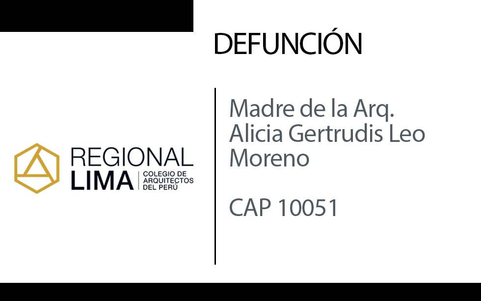 Defunción: Madre de la Arq. Alicia Gertrudis Leo Moreno CAP 10051 | NotiCAPLima 033 – 2025