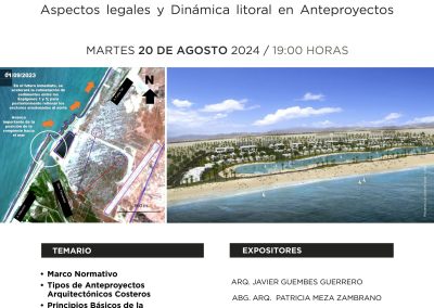 CONFERENCIA ARQUITECTURA COSTERA PERUANA: ASPECTOS LEGALES Y DINÁMICA LITORAL EN ANTEPROYECTOS | 20 DE AGOSTO 2024