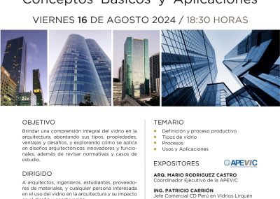 CHARLA TÉCNICA EL VIDRIO EN LA ARQUITECTURA – CONCEPTOS BÁSICOS Y APLICACIONES | 16 AGOSTO 2024