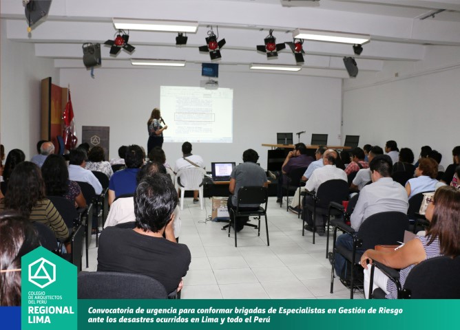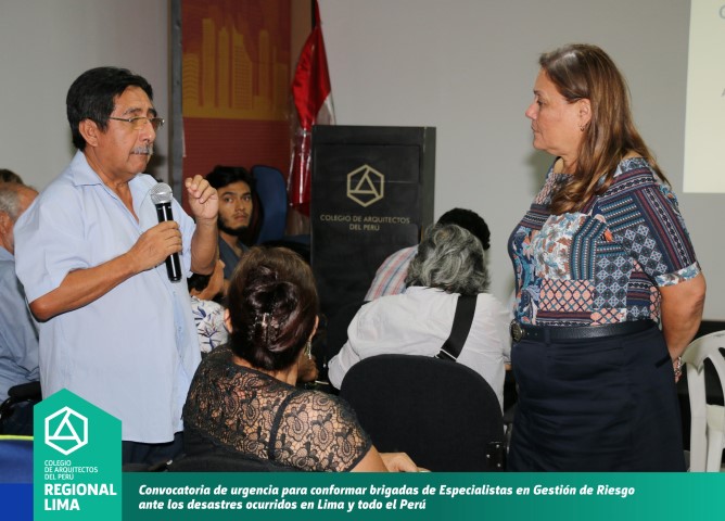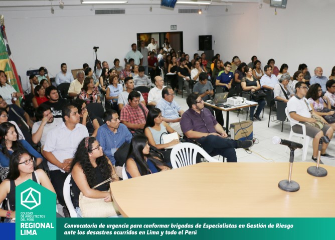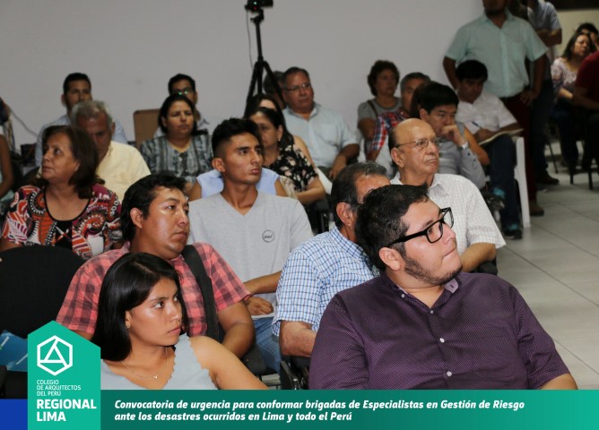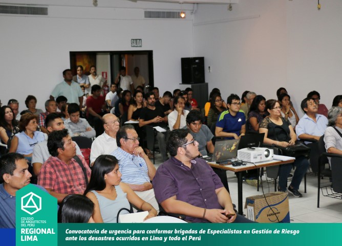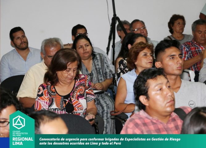 La convocatoria de la Decana CAP Región Lima, Arq. Constanza Remar tuvo una masiva participación, quedando demostrado el compromiso y solidaridad por parte de los colegas arquitectos para realizar trabajos técnicos en las zonas afectadas por los desastres naturales mediante la implementación de la prevención a través de las normas de urbanismo y construcción. Durante el desarrollo de la reunión se propuso la conformación de brigadas de trabajo que serán conformadas por arquitectos Especialistas en Gestión de Riesgo.